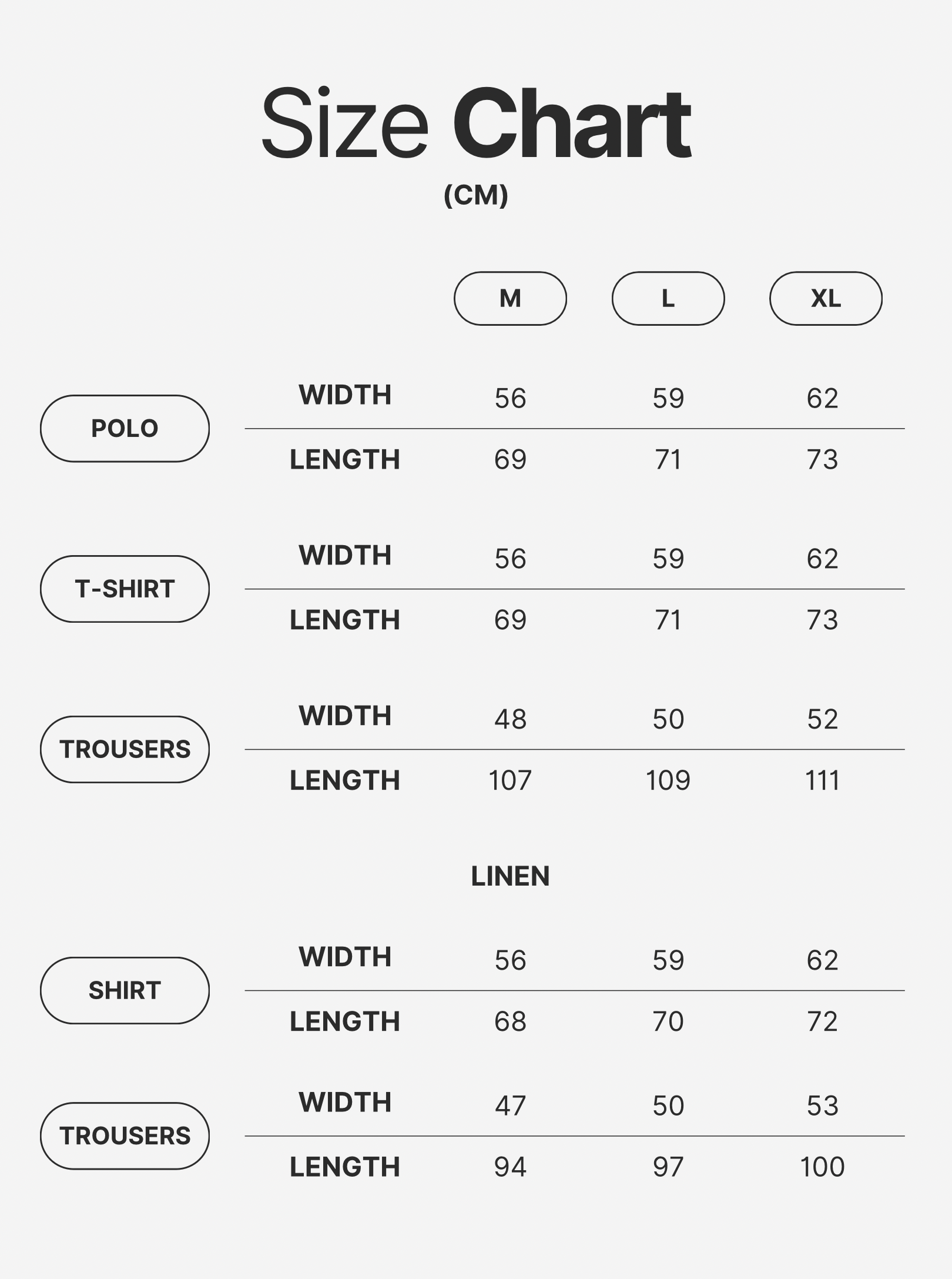 Our products are crafted to fit true to size, ensuring that you can confidently select your usual size with ease. Whether you’re looking for a relaxed or tailored fit, our designs are made to complement your unique shape and style.